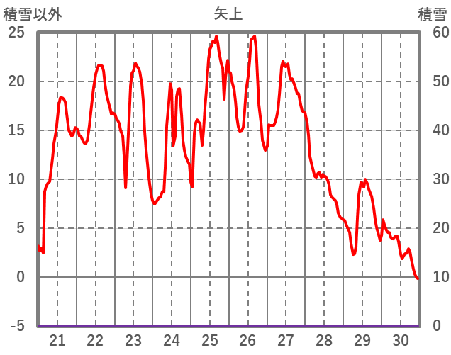 | 日 | 時 | 気温 | 降水 | 風向/風速 | 日照 | 積雪 | 降雪 |