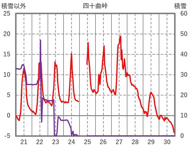 | 日 | 時 | 気温 | 降水 | 風向/風速 | 日照 | 積雪 | 降雪 |