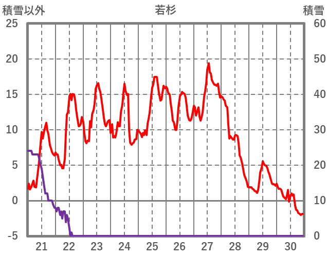 | 日 | 時 | 気温 | 降水 | 風向/風速 | 日照 | 積雪 | 降雪 |