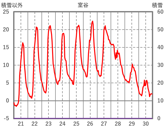 | 日 | 時 | 気温 | 降水 | 風向/風速 | 日照 | 積雪 | 降雪 |