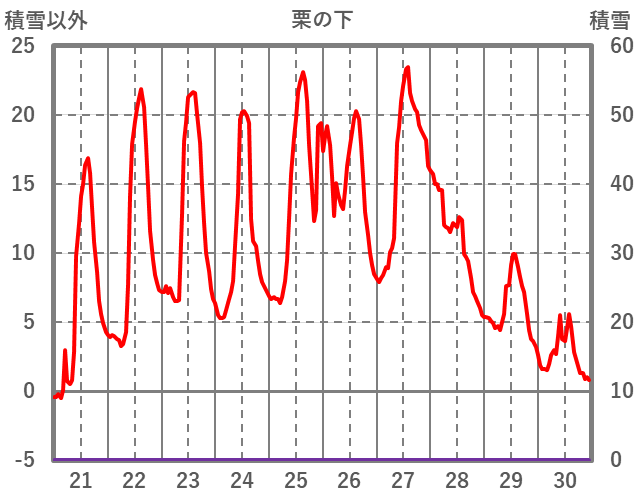 | 日 | 時 | 気温 | 降水 | 風向/風速 | 日照 | 積雪 | 降雪 |