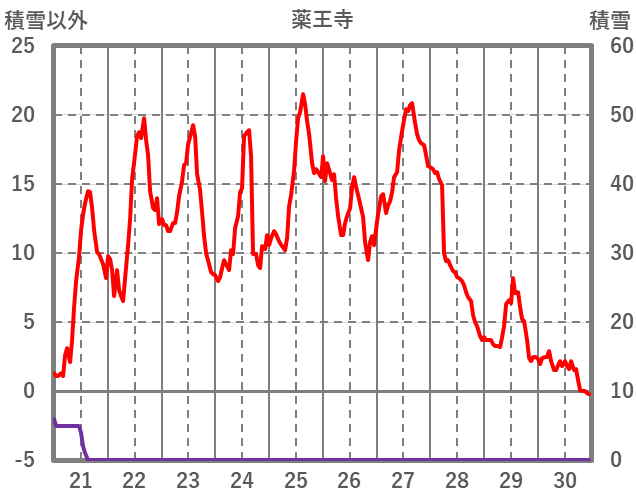 | 日 | 時 | 気温 | 降水 | 風向/風速 | 日照 | 積雪 | 降雪 |
