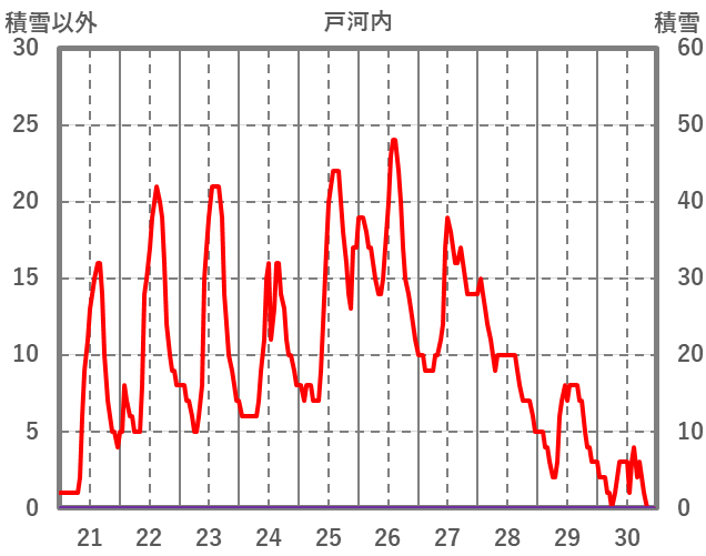 | 日 | 時 | 気温 | 降水 | 風向/風速 | 日照 | 積雪 | 降雪 |