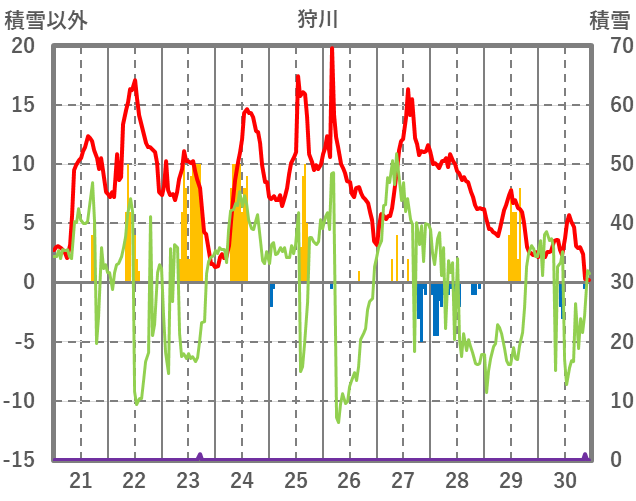 | 日 | 時 | 気温 | 降水 | 風向/風速 | 日照 | 積雪 | 降雪 |