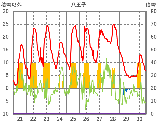 | 日 | 時 | 気温 | 降水 | 風向/風速 | 日照 | 積雪 | 降雪 |
