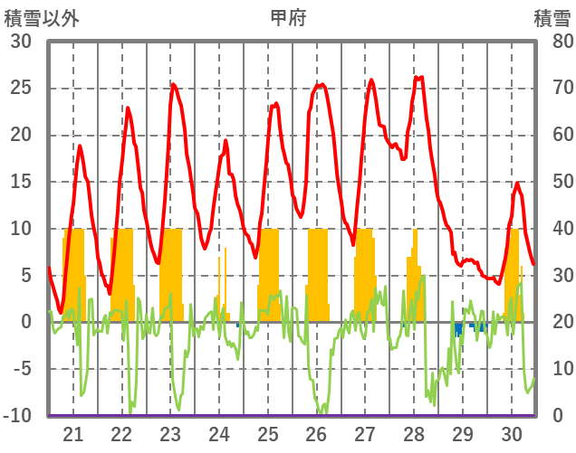 | 日 | 時 | 気温 | 降水 | 風向/風速 | 日照 | 積雪 | 降雪 |