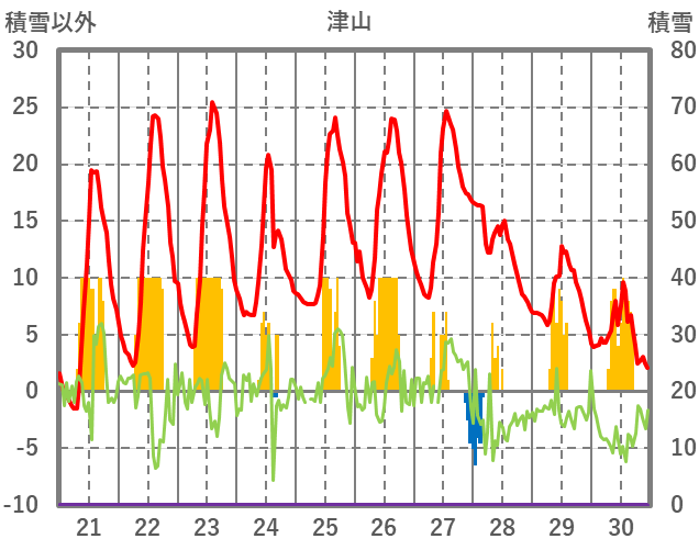 | 日 | 時 | 気温 | 降水 | 風向/風速 | 日照 | 積雪 | 降雪 |