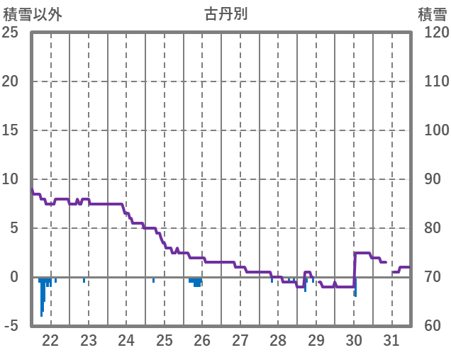 | 日 | 時 | 気温 | 降水 | 風向/風速 | 日照 | 積雪 | 降雪 |