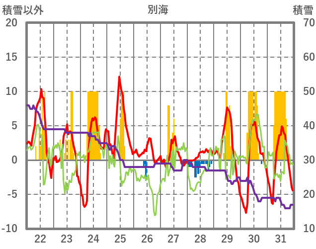 | 日 | 時 | 気温 | 降水 | 風向/風速 | 日照 | 積雪 | 降雪 |