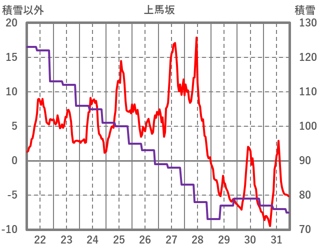 | 日 | 時 | 気温 | 降水 | 風向/風速 | 日照 | 積雪 | 降雪 |