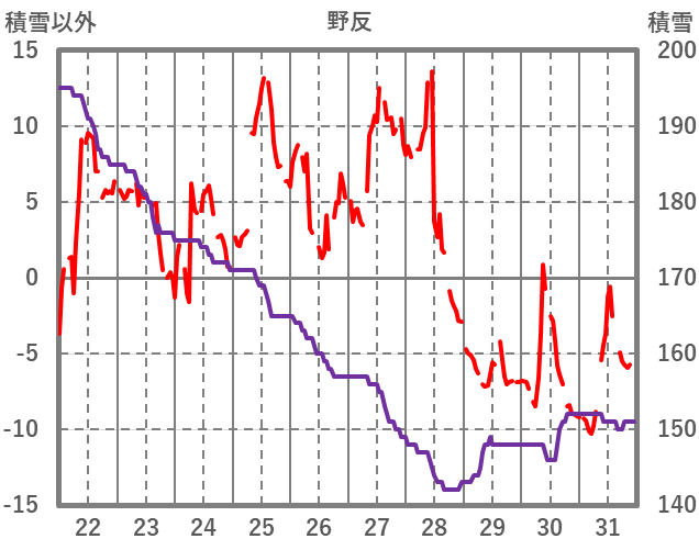 | 日 | 時 | 気温 | 降水 | 風向/風速 | 日照 | 積雪 | 降雪 |