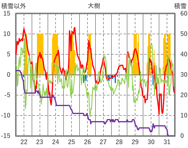 | 日 | 時 | 気温 | 降水 | 風向/風速 | 日照 | 積雪 | 降雪 |