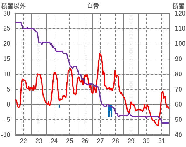 | 日 | 時 | 気温 | 降水 | 風向/風速 | 日照 | 積雪 | 降雪 |