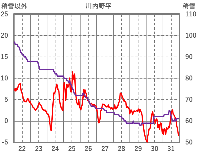 | 日 | 時 | 気温 | 降水 | 風向/風速 | 日照 | 積雪 | 降雪 |