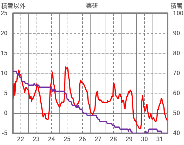 | 日 | 時 | 気温 | 降水 | 風向/風速 | 日照 | 積雪 | 降雪 |