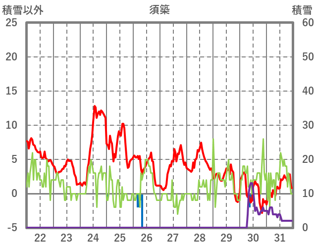 | 日 | 時 | 気温 | 降水 | 風向/風速 | 日照 | 積雪 | 降雪 |