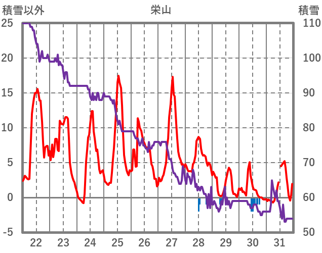 | 日 | 時 | 気温 | 降水 | 風向/風速 | 日照 | 積雪 | 降雪 |