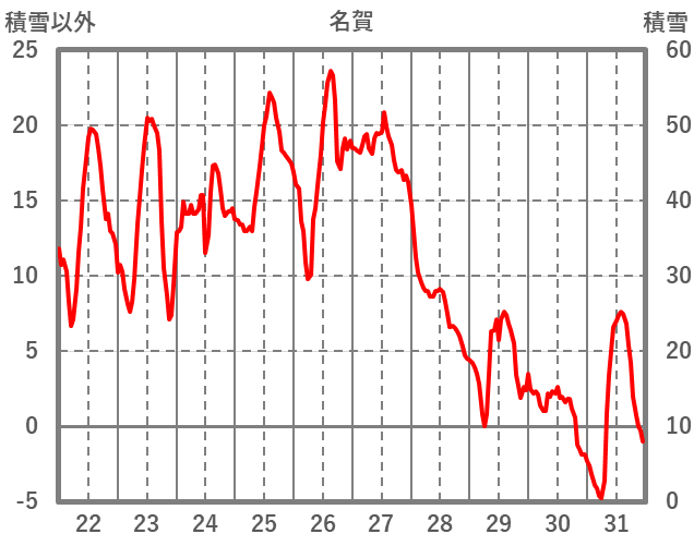 | 日 | 時 | 気温 | 降水 | 風向/風速 | 日照 | 積雪 | 降雪 |