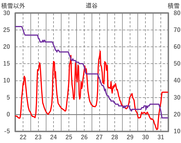 | 日 | 時 | 気温 | 降水 | 風向/風速 | 日照 | 積雪 | 降雪 |