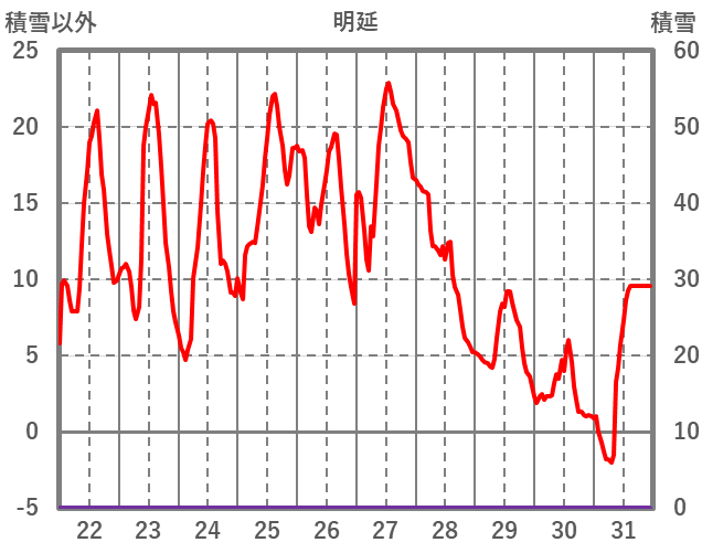 | 日 | 時 | 気温 | 降水 | 風向/風速 | 日照 | 積雪 | 降雪 |