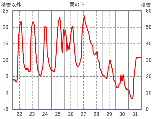 | 日 | 時 | 気温 | 降水 | 風向/風速 | 日照 | 積雪 | 降雪 |