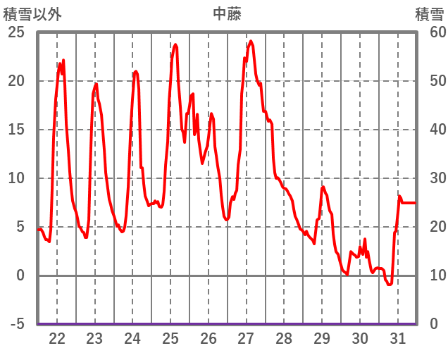 | 日 | 時 | 気温 | 降水 | 風向/風速 | 日照 | 積雪 | 降雪 |