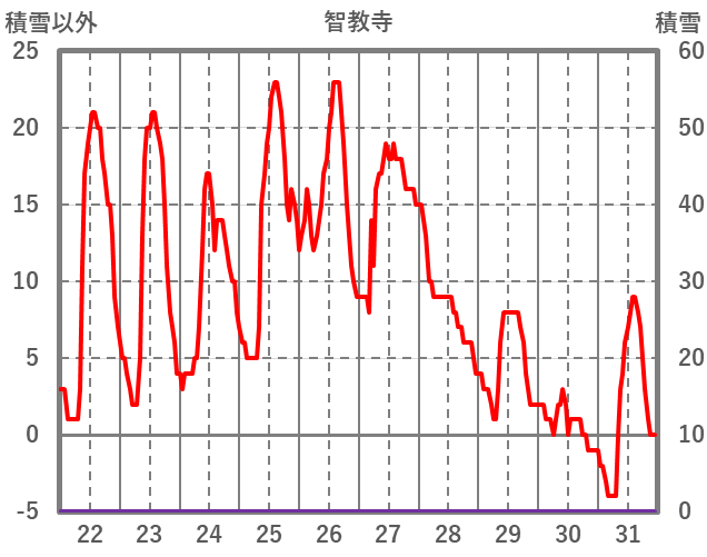| 日 | 時 | 気温 | 降水 | 風向/風速 | 日照 | 積雪 | 降雪 |