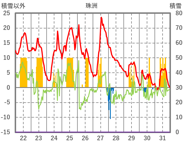 | 日 | 時 | 気温 | 降水 | 風向/風速 | 日照 | 積雪 | 降雪 |