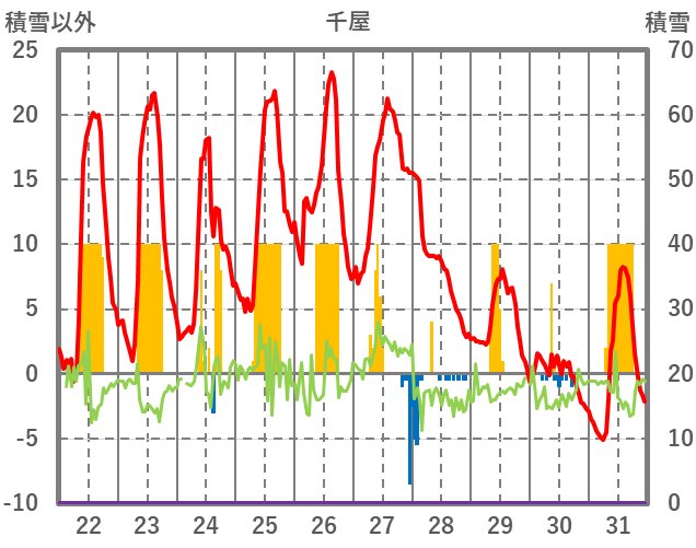 | 日 | 時 | 気温 | 降水 | 風向/風速 | 日照 | 積雪 | 降雪 |
