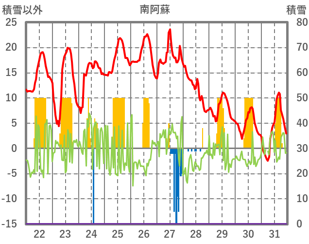 | 日 | 時 | 気温 | 降水 | 風向/風速 | 日照 | 積雪 | 降雪 |