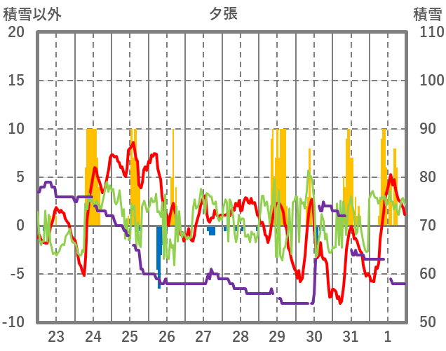 | 日 | 時 | 気温 | 降水 | 風向/風速 | 日照 | 積雪 | 降雪 |