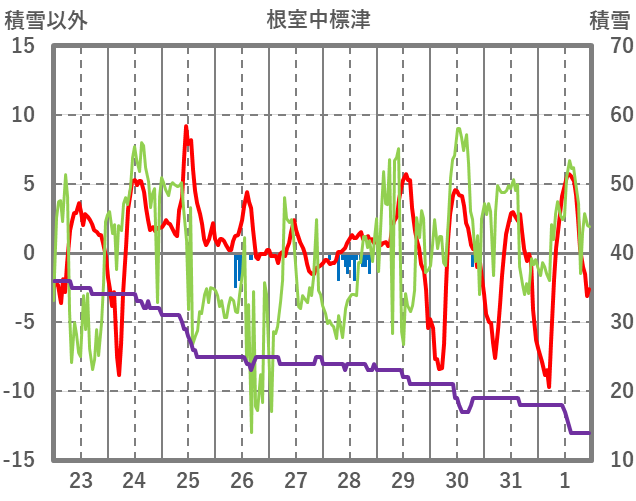 | 日 | 時 | 気温 | 降水 | 風向/風速 | 日照 | 積雪 | 降雪 |