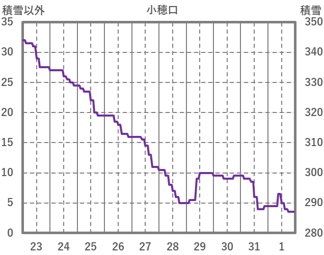 | 日 | 時 | 気温 | 降水 | 風向/風速 | 日照 | 積雪 | 降雪 |