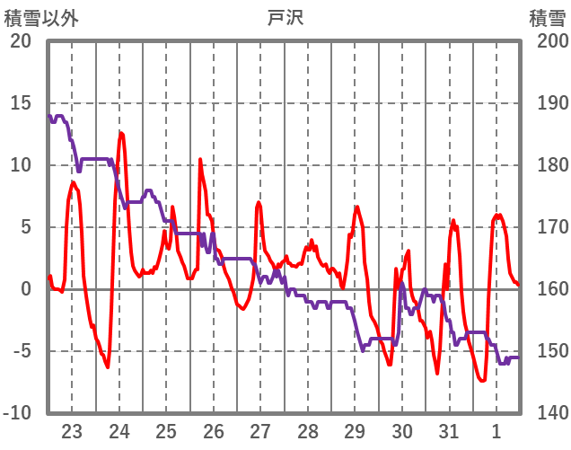 | 日 | 時 | 気温 | 降水 | 風向/風速 | 日照 | 積雪 | 降雪 |