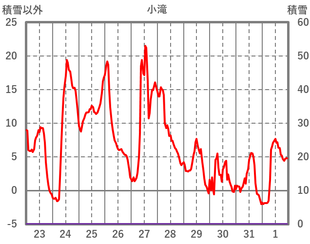 | 日 | 時 | 気温 | 降水 | 風向/風速 | 日照 | 積雪 | 降雪 |