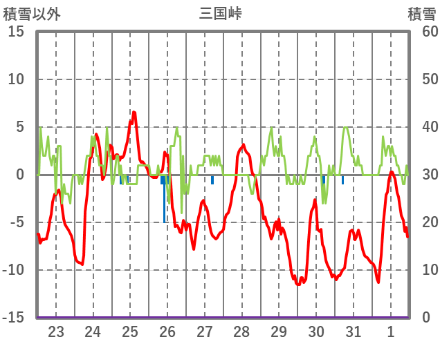 | 日 | 時 | 気温 | 降水 | 風向/風速 | 日照 | 積雪 | 降雪 |