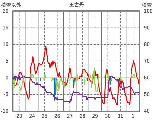 | 日 | 時 | 気温 | 降水 | 風向/風速 | 日照 | 積雪 | 降雪 |