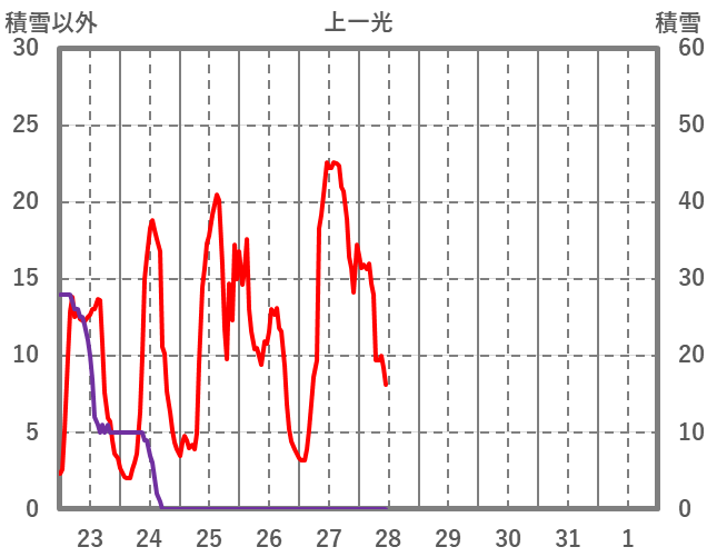 | 日 | 時 | 気温 | 降水 | 風向/風速 | 日照 | 積雪 | 降雪 |