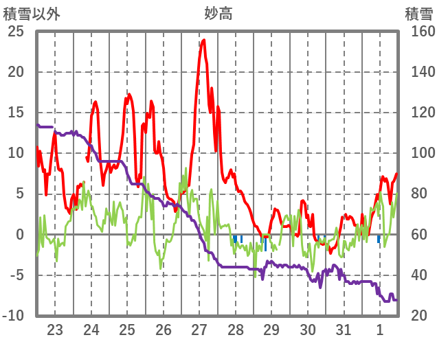 | 日 | 時 | 気温 | 降水 | 風向/風速 | 日照 | 積雪 | 降雪 |