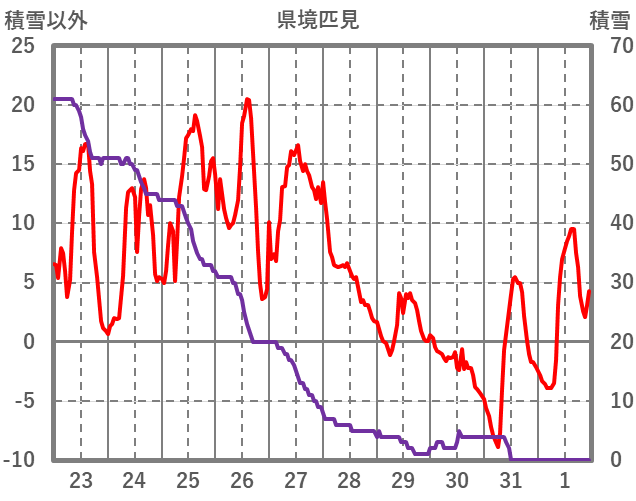 | 日 | 時 | 気温 | 降水 | 風向/風速 | 日照 | 積雪 | 降雪 |