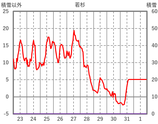 | 日 | 時 | 気温 | 降水 | 風向/風速 | 日照 | 積雪 | 降雪 |