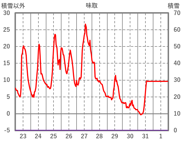 | 日 | 時 | 気温 | 降水 | 風向/風速 | 日照 | 積雪 | 降雪 |
