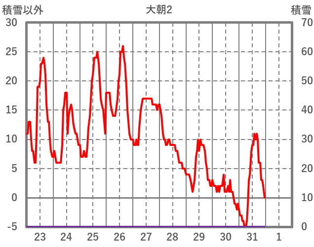 | 日 | 時 | 気温 | 降水 | 風向/風速 | 日照 | 積雪 | 降雪 |