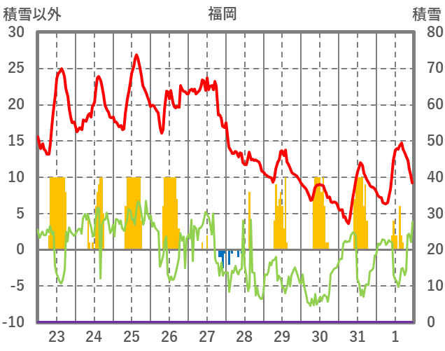 | 日 | 時 | 気温 | 降水 | 風向/風速 | 日照 | 積雪 | 降雪 |