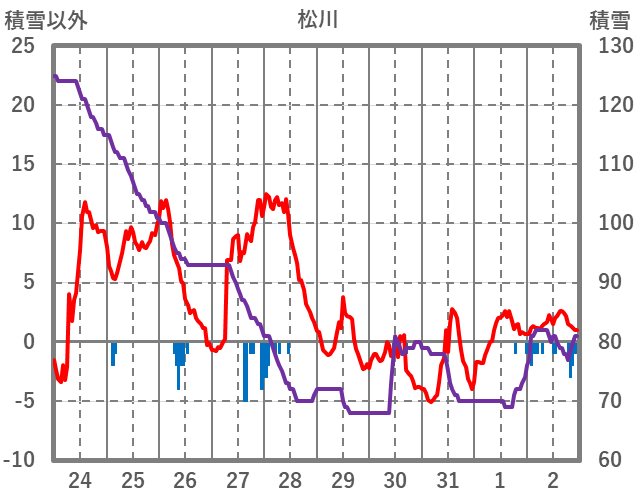 | 日 | 時 | 気温 | 降水 | 風向/風速 | 日照 | 積雪 | 降雪 |
