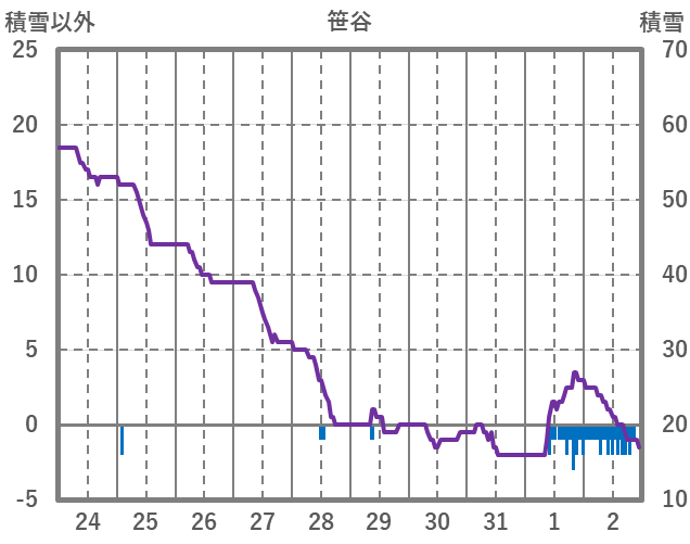 | 日 | 時 | 気温 | 降水 | 風向/風速 | 日照 | 積雪 | 降雪 |