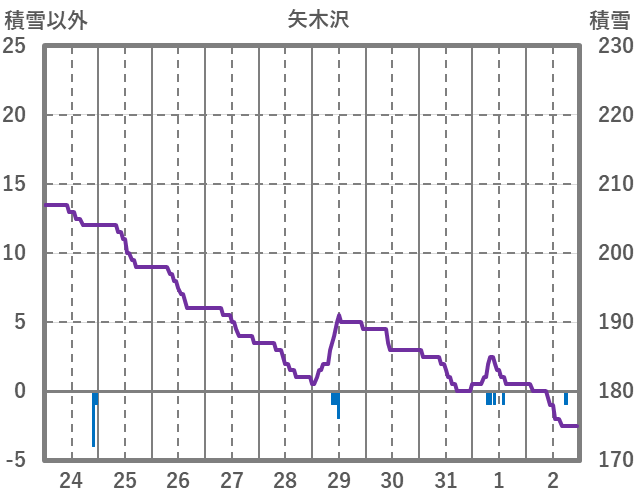 | 日 | 時 | 気温 | 降水 | 風向/風速 | 日照 | 積雪 | 降雪 |