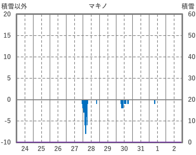 | 日 | 時 | 気温 | 降水 | 風向/風速 | 日照 | 積雪 | 降雪 |
