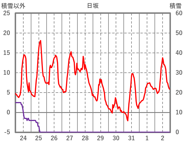 | 日 | 時 | 気温 | 降水 | 風向/風速 | 日照 | 積雪 | 降雪 |