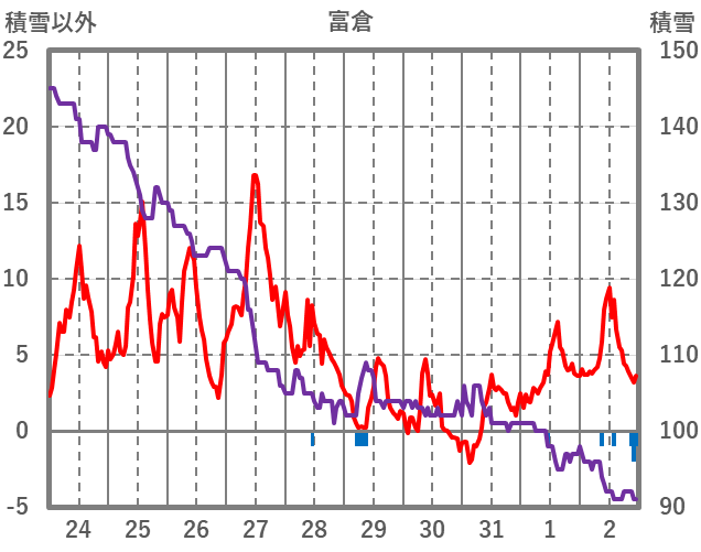 | 日 | 時 | 気温 | 降水 | 風向/風速 | 日照 | 積雪 | 降雪 |